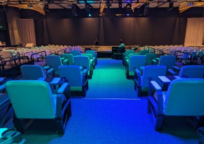At In Depth Events, we understand the importance of creating a positive experience for every attendee. Our assigned seating audience risers are designed with precision and flexibility to cater to diverse applications. From enhancing visibility in a black box theater to hosting award ceremonies where every view matters, we provide structures that ensure each seat offers a premium perspective. We work with your ticketing layout to ensure you have the seats needed to match your goals.  Part of the service at In Depth Events includes chair identification stickers, row and aisle markers, and low-level lighting for safety before, during, and after the performance.